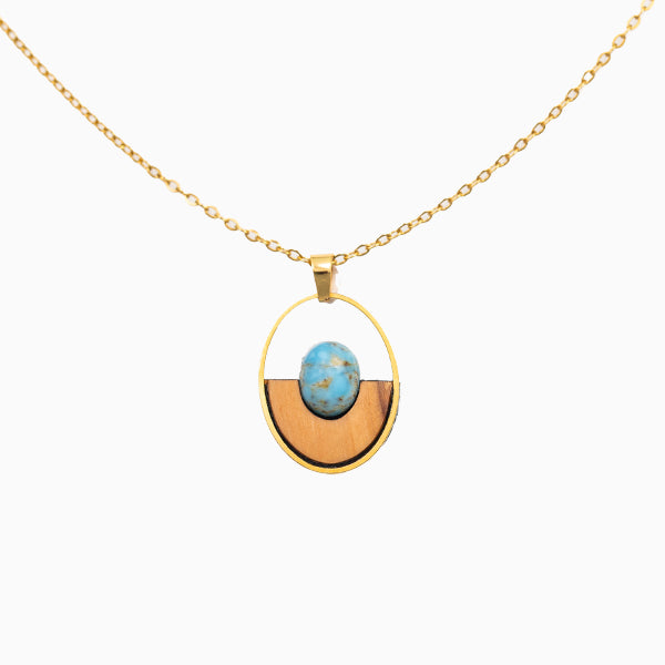 Halskette aus Olivenholz "Horizont oval - blau" Nr. 052.175