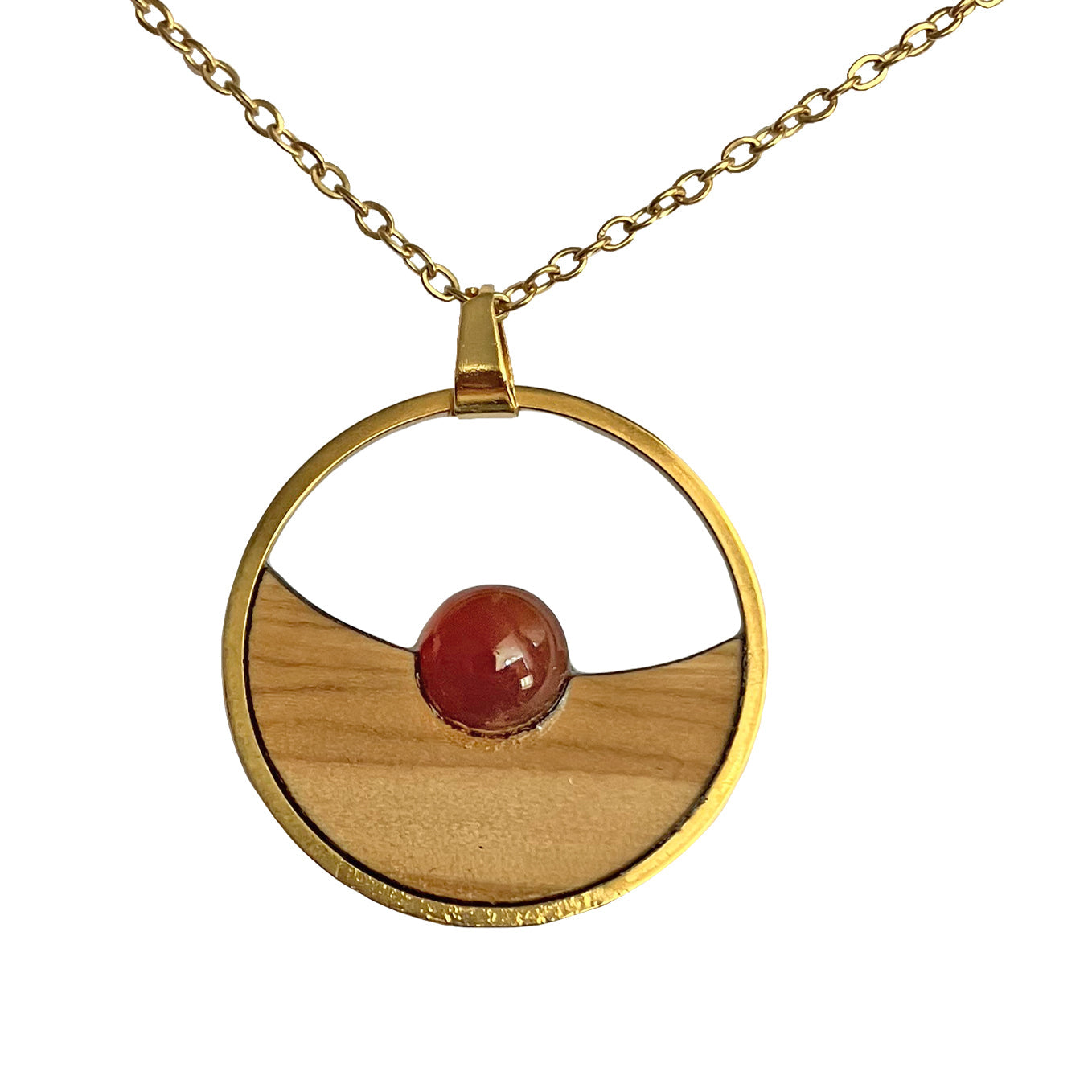 Halskette aus Olivenholz "Horizont rund - orange" Nr. 052.196