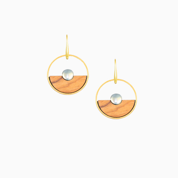 Ohrringe aus Olivenholz "Horizont rund - weiß" Nr. 052.953