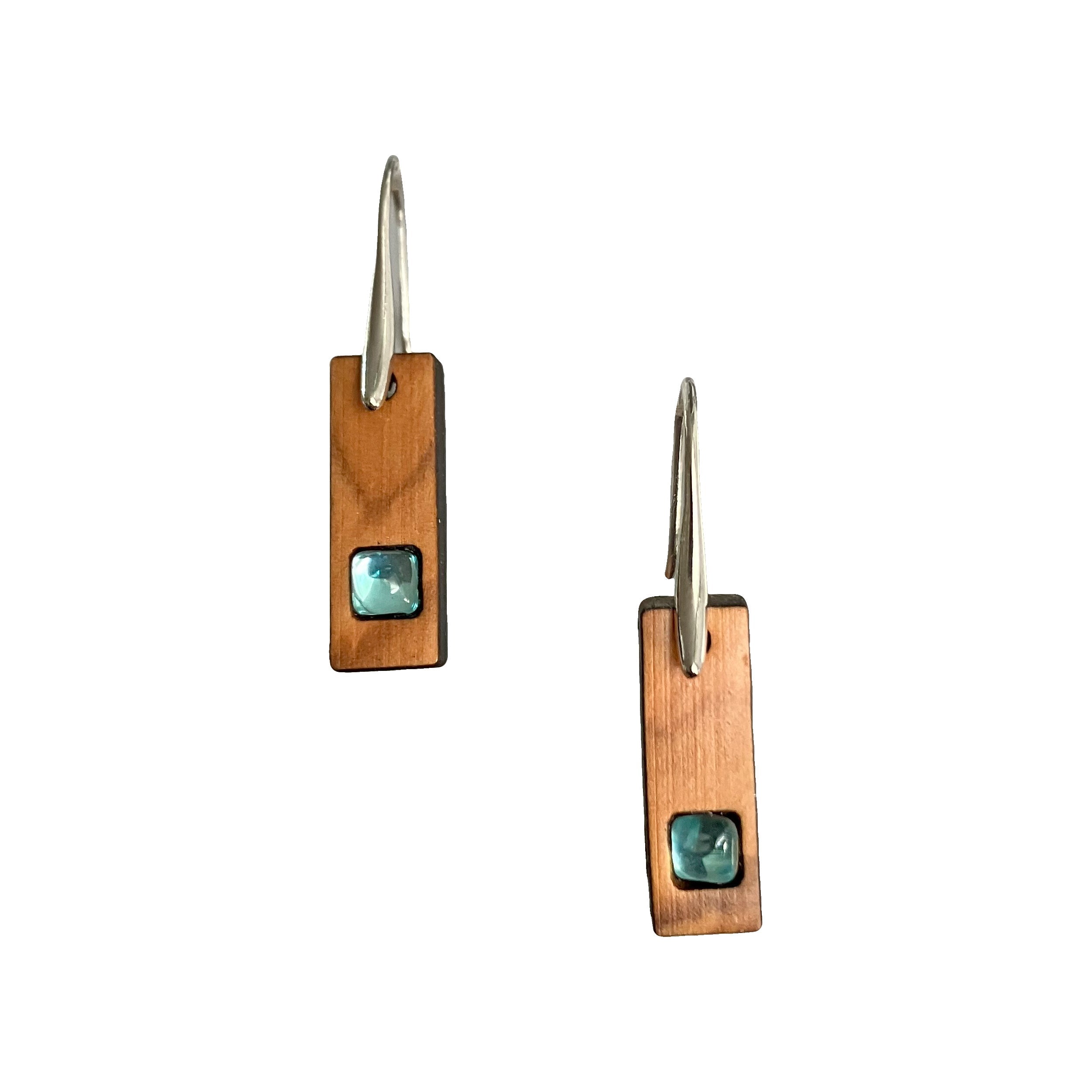 Ohrringe aus Olivenholz "Quaderstein - blau/silber" Nr. 052.316.1