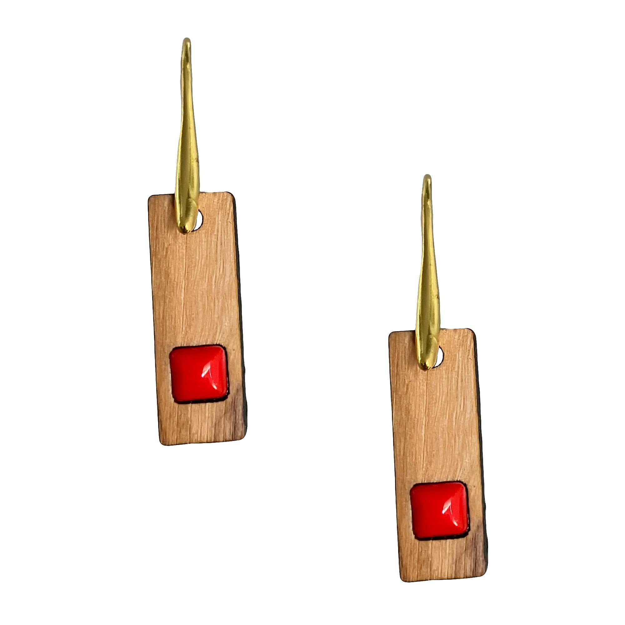 Ohrringe aus Olivenholz "Quaderstein - rot/gold" Nr. 052.315