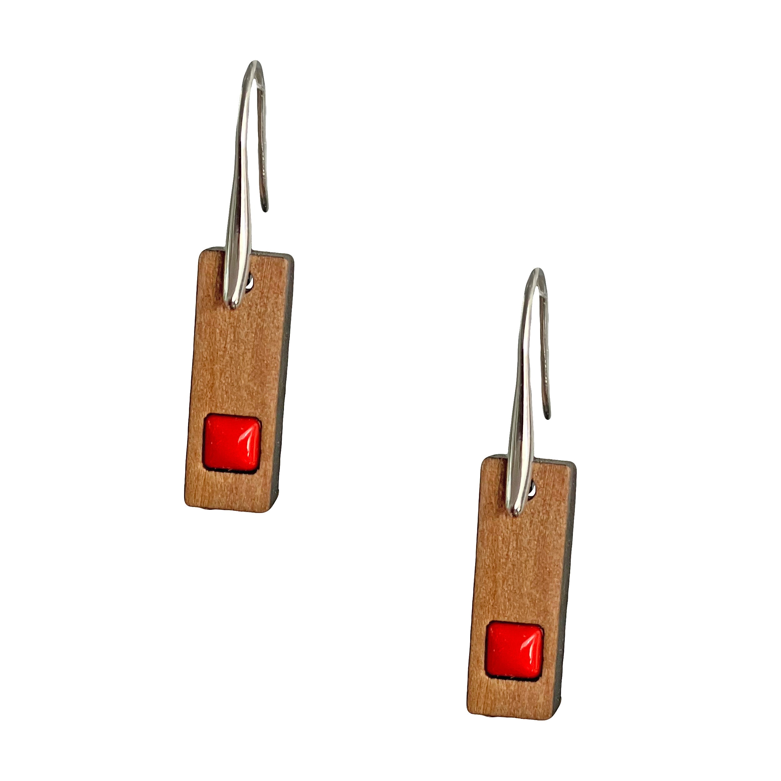 Ohrringe aus Olivenholz "Quaderstein - rot/silber" Nr. 052.314