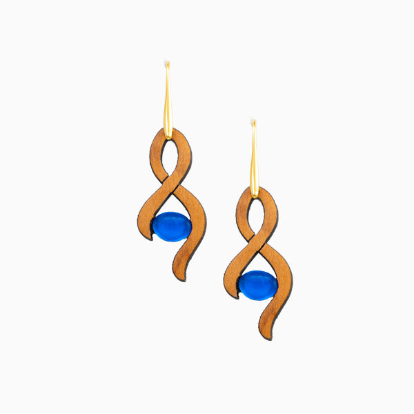 Ohrringe aus Olivenholz "Wellenspiel - blau" Nr. 052.946