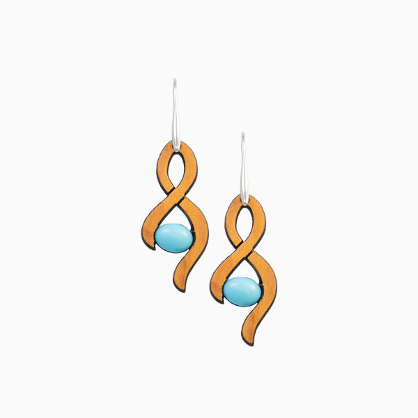 Ohrringe aus Olivenholz "Wellenspiel - türkis" Nr. 052.939